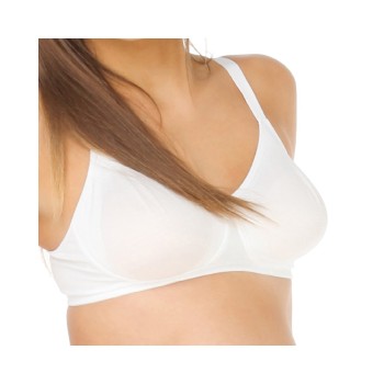 Reggiseno premaman con coppe elastiche che assecondano la crescita del seno e sostegno verticale tramite innovativa cucitura a "punto cieco" molto piatta