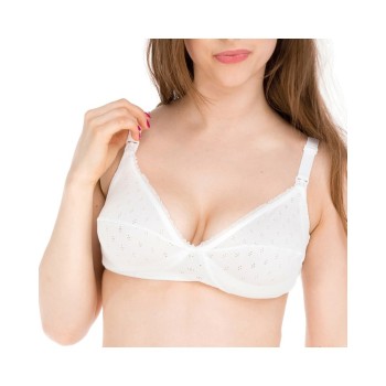 Reggiseno premaman in pregiato tessuto in cotone traforato e ricamato san gallo.